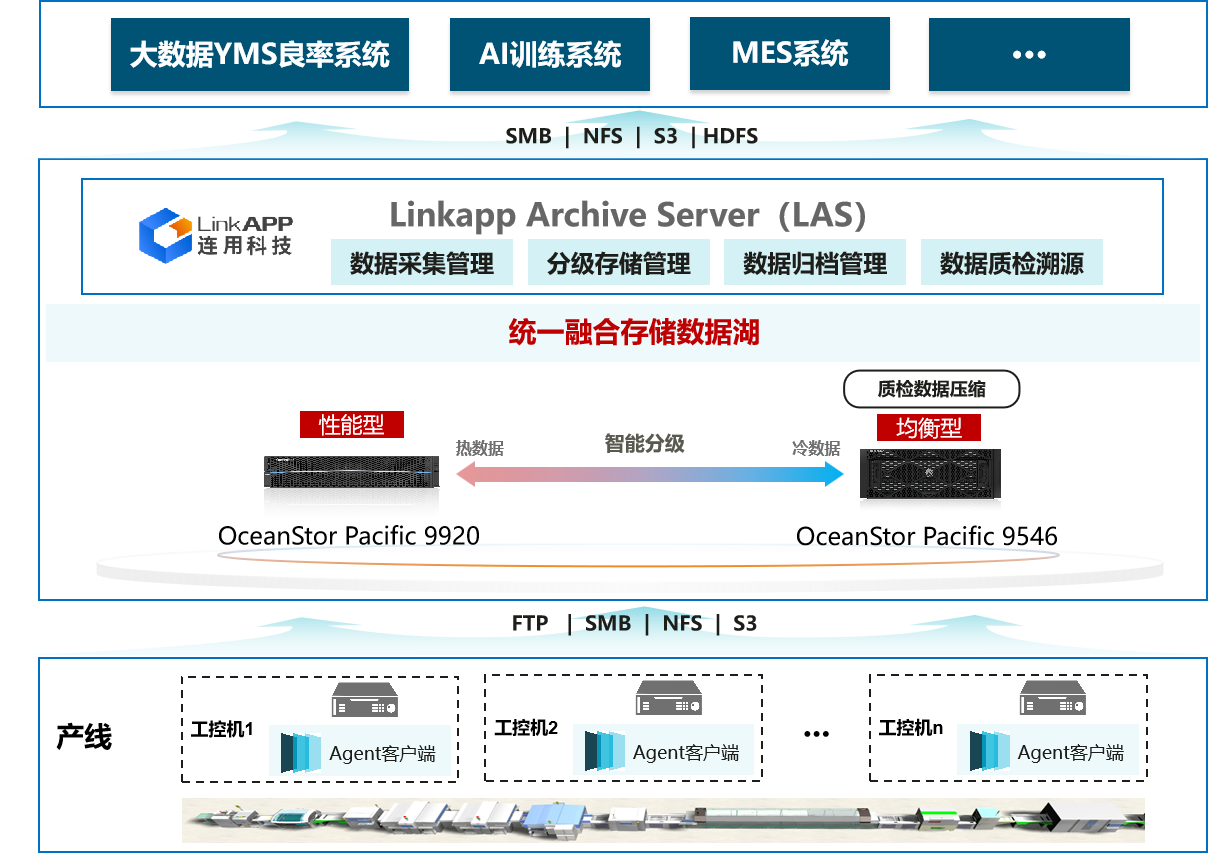 华为与连用科技携手打造的基于存储数据湖的机台海量数据管理联合方案,旨在满足客户对质检流程的集成化、智能化和环保低碳的需求,实现质检与归档的一体化管理。