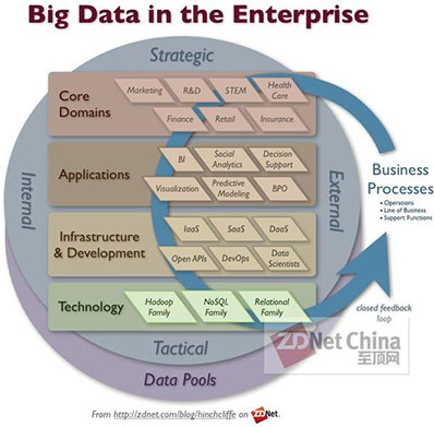 此外,企业还将必须提供一个大数据“堆栈”。这个堆栈将通常是由以下组件构成,涉及包括开源软件、商业应用、预置的云基础设施,结合不同来源的数据。