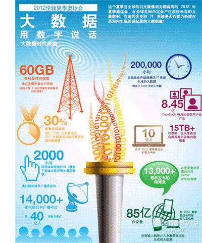 这些数据,不仅使四年一次的奥林匹克运动吸引着全世界的目光,同时,也使有关科技奥运的讨论惹人关注。在信息化飞速发展的今天,毫无疑问,这是一届伴随着大数据时代来临而展开的体育盛事。NetApp通过一张生动的图表,详细地展示了在为期两周的奥运会期间,全球范围内通过社交网络、电视台、广播电台、有线和无线设备所产生的惊人的数据量。