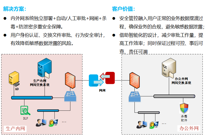l在相互隔离的办公内网电脑与互联网电脑之间传输文件,通过传统方式如U盘、邮件以及刻录光盘等方式,往往会面临难以实现对交换数据防泄密、防扩散以及审计、追责等文件安全管控的困境。