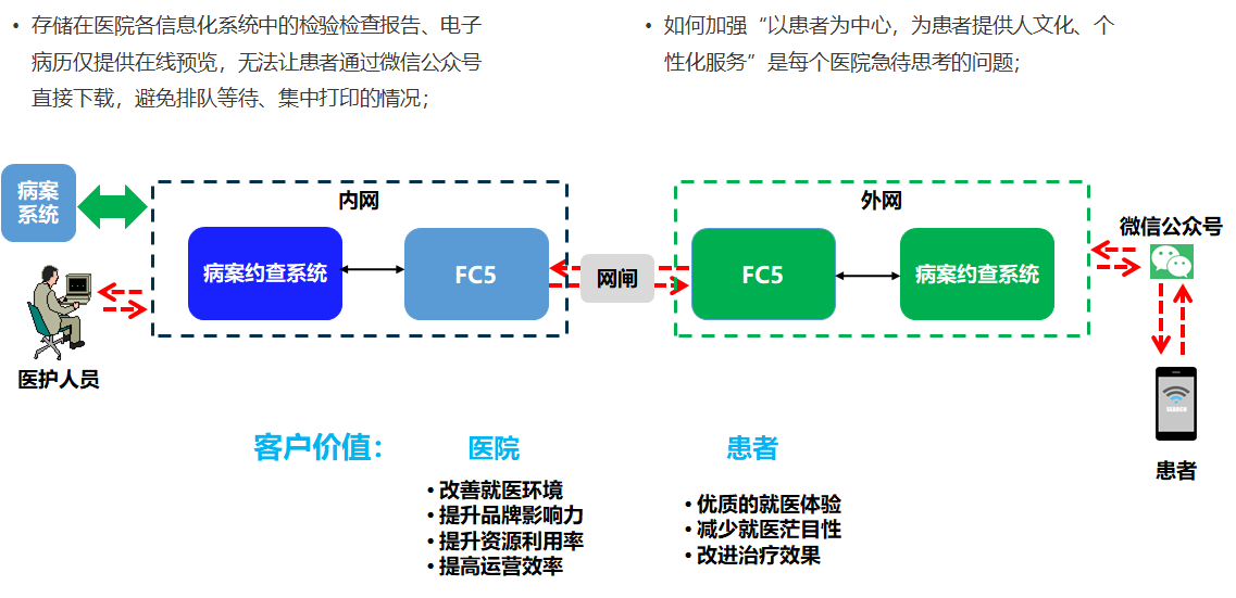 l存储在医院各信息化系统中的检验检查报告、电子病历仅提供在线预览,无法让患者通过微信公众号直接下载,避免排队等待、集中打印的情况。