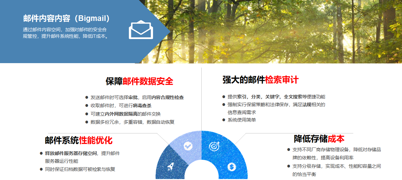 通过邮件内容空间,加强对邮件的安全合规管控,提升邮件系统性能,降低IT成本。