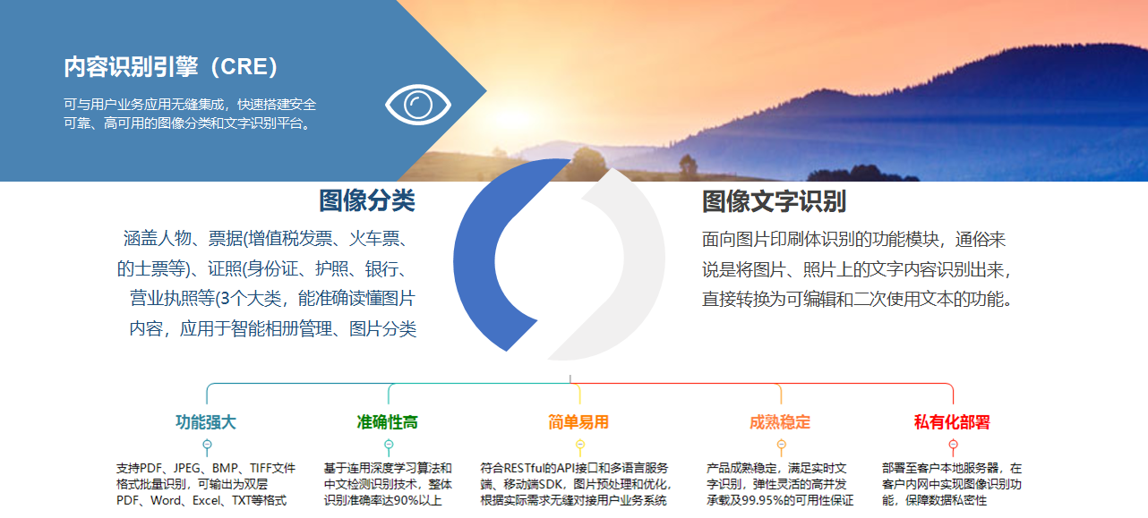 可与用户业务应用无缝集成,快速搭建安全可靠、高可用的图像分类和文字识别平台。
