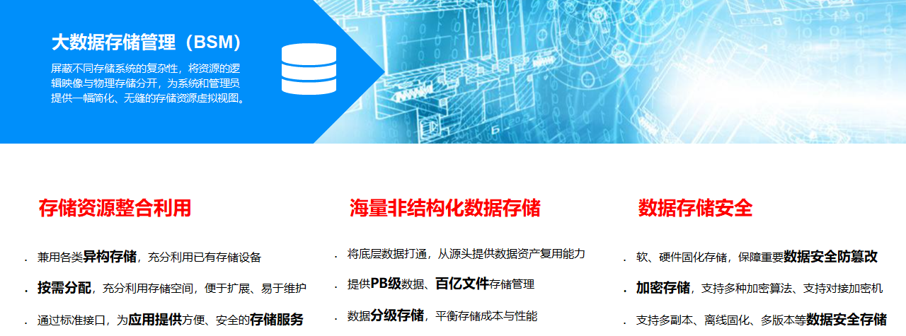 03大数据存储统一管理模块支持多类型和品牌的分布式文件系统、对象存储系统。