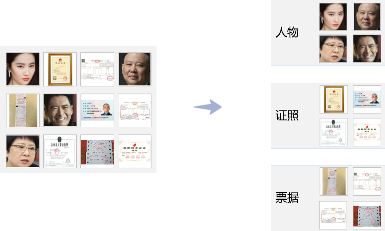 涵盖人物、票据(增值税发票、火车票、的士票等)、证照(身份证、护照、银行、营业执照等(3个大类,能准确读懂图片内容,应用于智能相册管理、图片分类。