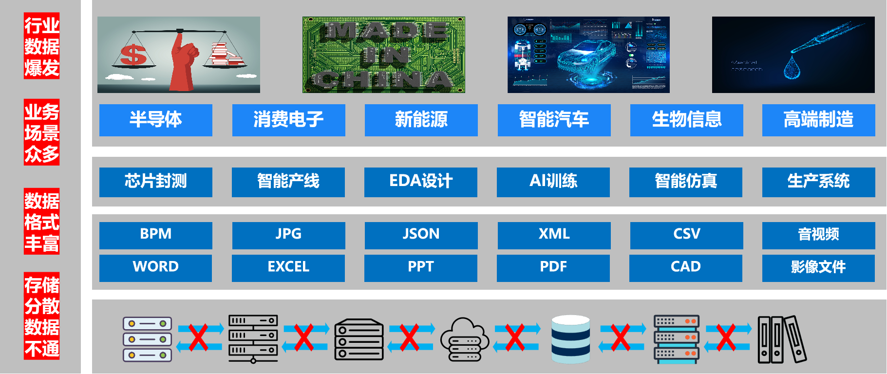 高端制造数字化和人工智能广泛应用是数据暴增的主要因素和驱动力,同时行业数据暴增也给数据存储带来管理挑战。